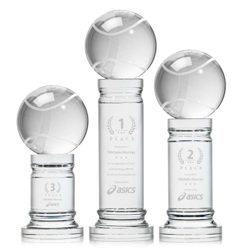 Of the Crystal Awards, this beautiful Tennis Ball Award on Colverstone Base is a great choice. (OPT8524-CV1) Our Tennis Ball Award is a striking tribute to the dedication and skill of tennis enthusiasts. At the heart of this masterpiece is a flawlessly rendered Optical Crystal Tennis Ball that refracts light in a captivating display. Mounted on a complimenting Optical base for personalization with a Logo or Name. An exceptional award, gift, or keepsake for tennis tournaments, competitions, or special occasions.