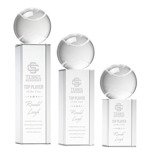 Of the Crystal Awards, this beautiful Tennis Ball Award on Dakota Base is a great choice. (OPT8523-DK1) Our Tennis Ball Award is a striking tribute to the dedication and skill of tennis enthusiasts. At the heart of this masterpiece is a flawlessly rendered Optical Crystal Tennis Ball that refracts light in a captivating display. Mounted on a complimenting Optical base for personalization with a Logo or Name. An exceptional award, gift, or keepsake for tennis tournaments, competitions, or special occasions.