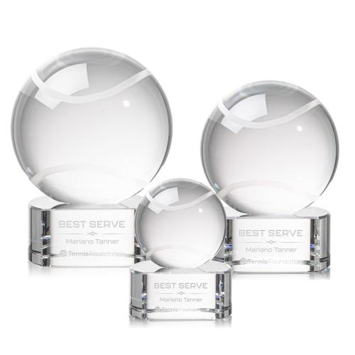 Of the Crystal Awards, this beautiful Tennis Ball Award on Paragon Base is a great choice. (OPT8522-PC) Our Tennis Ball Award is a striking tribute to the dedication and skill of tennis enthusiasts. At the heart of this masterpiece is a flawlessly rendered Optical Crystal Tennis Ball that refracts light in a captivating display. Mounted on a complimenting Optical base for personalization with a Logo or Name. An exceptional award, gift, or keepsake for tennis tournaments, competitions, or special occasions.