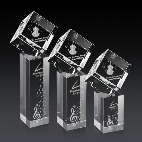 Of the Crystal Awards, this beautiful Burrill 3D Award on Dakota Base is a great choice. (OPD6373-DK) A perfectly polished 3 Dimensional cube made from the purest Optical Crystal. Features a subtle single beveled edge all around. Let this recognition piece shine as an award, paperweight or momento for your desk or shelf. Mounted on our Optical Dakota base.