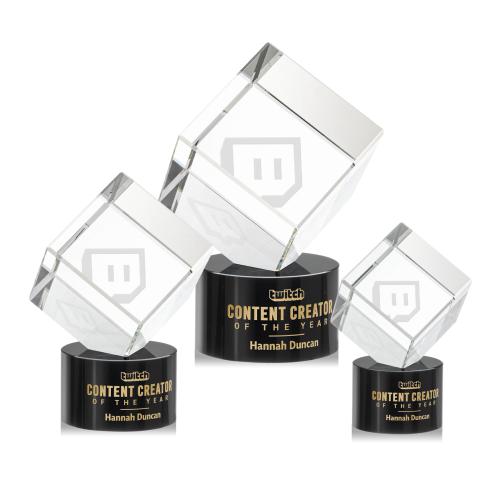 Of the Crystal Awards, this beautiful Burrill Award on Marvel Base - Black is a great choice. (OPT6373-MK) A perfectly polished cube made from the purest Optical Crystal. Features a subtle single beveled edge all around. Let this recognition piece shine as an award, paperweight or momento for your desk or shelf. Complete with your choice of Clear, Ebony, Emerald, or Sapphire round Optical Crystal base.