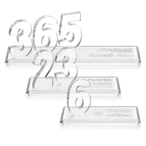 Of the Crystal Awards, this beautiful Northam Milestone Award - Clear is a great choice. (AWS6071) Celebrate an important milestone with the Northam Milestone Awards. Personalize the award with one, two, or three Starfire Crystal digits, allowing you to commemorate specific milestones, years of service, or any numerical achievement that deserves acknowledgment. Numbers sit atop your choice of clear crystal base.