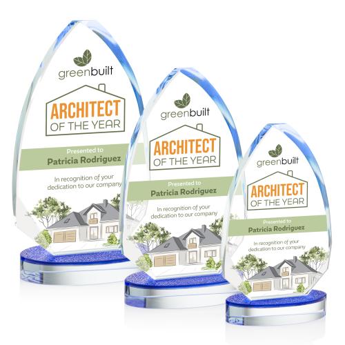 Of the Crystal Awards, this beautiful Stanmore VividPrint™ Award is a great choice. (AWV7311) The Stanmore VividPrint Award features an arrowhead-shaped Starfire Crystal with beveled edges, a symbol of precision, direction, and remarkable accomplishment. Mounted on an oval base with a unique textured sapphire top crafted to catch and refract light, creating a mesmerizing play of brilliance. Take your artwork to new heights with full-color VividPrint.