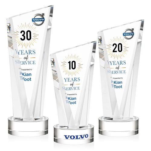 Of the Crystal Awards, this beautiful Plymouth VividPrint™ Award on Stanrich Base - Clear is a great choice. (OPV7621-SC) The magnificently angular design of the Plymouth VividPrint Award features a slanted top and thick bevels that overlap at the bottom for a stunning effect. This freestanding accolade is the presentation piece deserving of an outstanding achiever. Let your message POP! with full-color VividPrint. Second-position decoration on base optional.