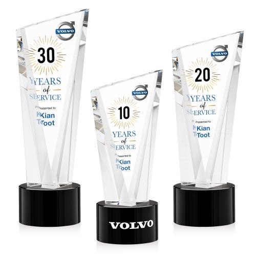 Of the Crystal Awards, this beautiful Plymouth VividPrint™ Award on Marvel Base - Black is a great choice. (OPV7621-MK) The magnificently angular design of the Plymouth VividPrint Award features a slanted top and thick bevels that overlap at the bottom for a stunning effect. This freestanding accolade is the presentation piece deserving of an outstanding achiever. Let your message POP! with full-color VividPrint. Second-position decoration on base optional.