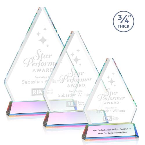Of the Crystal Awards, this beautiful Fyreside Award on Newhaven - Prismatic is a great choice. (AWS17162-M) The Starfire Crystal Fyreside Award is a majestic award to recognize a marvelous achievement. Features deep bevels that frame your words of appreciation with sparkling light and mounted on a tall tapered crystal prismatic base. Second position imprint optional.