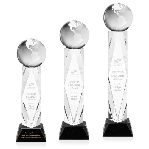 Of the Crystal Awards, this beautiful Globe Award on Toscana Base - Black is a great choice. (OPG524-TK1) Celebrate outstanding achievements with our perfectly shaped Optical Crystal Globe Award, elegantly mounted on a handsome base and designed to rotate freely, symbolizing global excellence. This exquisite award offers a perfect fit for any recognition ceremony. Honor your recipients with a timeless piece that reflects their exceptional contributions and global impact. _Second position etch optional_