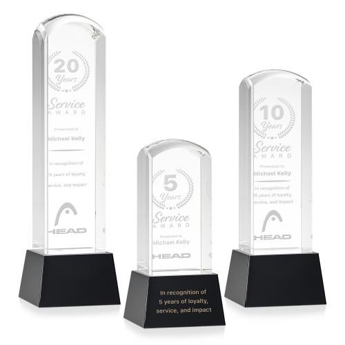 Of the Crystal Awards, this beautiful Silkwood Award on Base - Black is a great choice. (OPT3201-K) Recognize exceptional achievements with the stunning optical crystal Silkwood Award, designed with a gracefully curved top for a sleek, modern look. Resting on a matching crystal base, it exudes elegance and clarity, making it the perfect symbol of excellence. Base available in clear, green, black, or blue. __2nd Position Etch/Colorfill on Base optional__