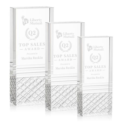 Of the Crystal Awards, this beautiful Hilldale Award is a great choice. (OPT3211) The Hilldale Award is a freestanding optical crystal piece with a distinctive argyle pattern at the base creating a sophisticated and modern look. This award is a timeless symbol of excellence, perfect for recognizing outstanding achievements in sales or any industry.