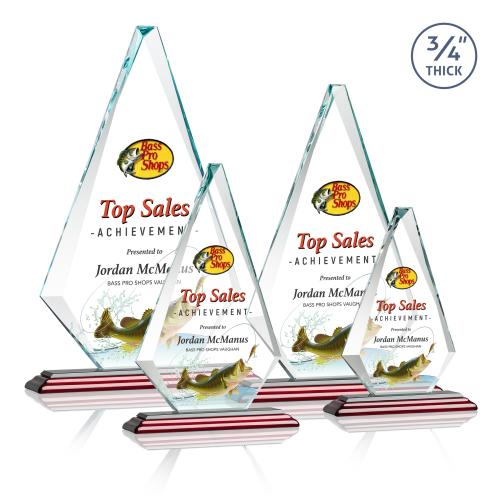 Of the Crystal Awards, this beautiful Windsor VividPrint™ Award - Rosewood is a great choice. (AWV1401-N) The exquisite Windsor Award features a 0.75" thick Starfire Crystal diamond with sparkling interchanging facets and is mounted on a triple-stepped piano-finished rosewood Albion Base. A classic design that's perfect for corporate recognition. Let your message POP with full-color VividPrint.