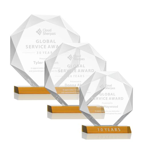 Of the Crystal Awards, this beautiful Kitchener Award - Amber is a great choice. (AWS2441-A) Striking Starfire Octagon award refracts light through all of its facets creating a brilliant display for achievement recognition. Available in 3 sizes and 10 different colored bases.