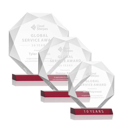 Of the Crystal Awards, this beautiful Kitchener Award - Red is a great choice. (AWS2441-R) Striking Starfire Octagon award refracts light through all of its facets creating a brilliant display for achievement recognition. Available in 3 sizes and 10 different colored bases.