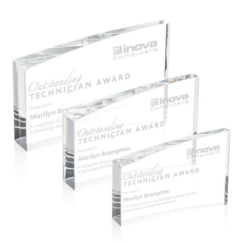 Of the Crystal Awards, this beautiful Hayes Award is a great choice. (OPT3571) The contoured surface of the Hayes is created of thick optical crystal and made to resemble a contemporary scroll, rolled open to display your accomplishment.