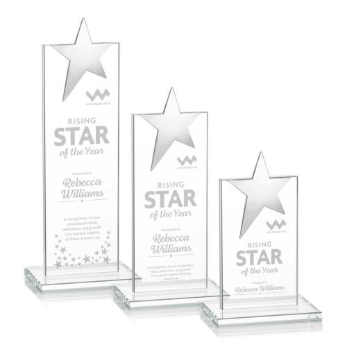 Of the Crystal Awards, this beautiful Bryanston Chrome Star Award - Clear is a great choice. (OPS211-C) Magnificent Towering Star Award is perfect for recognizing an exceptional achievement. Featuring a chrome polished star ornament and your choice of 8 colored bases.