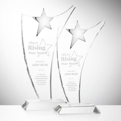 Of the Crystal Awards, this beautiful Atkinson Chrome Star Award is a great choice. (OPS332-C) The Atkinson Chrome Star Award is an impressive tall recognition piece crafted from brilliant optical crystal. Its free-flowing design rises gracefully to showcase a striking chrome star at the peak, symbolizing achievement and excellence. Available in two sizes, this award is perfect for celebrating top performers and honoring shining success with elegance and distinction.