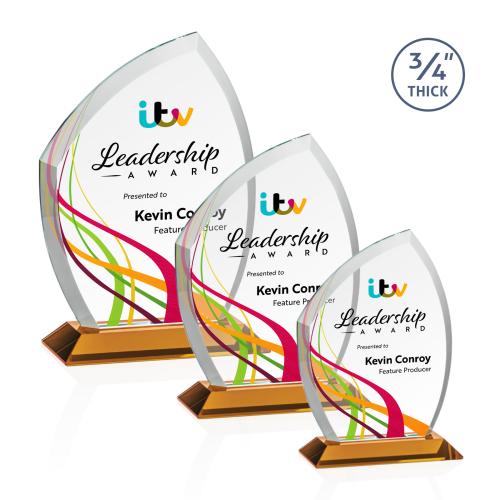 Of the Crystal Awards, this beautiful Daltry VividPrint™ Award - Amber is a great choice. (AWV2141-A) With its beautiful curved beveled frame, the 3/4" thick Starfire Crystal Daltry with VividPrint is a graceful award for recognizing a special achievement. Available with your choice of 8 distinct and brilliantly mitered colored bases.