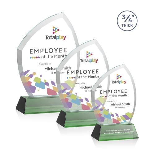 Of the Crystal Awards, this beautiful Daltry VividPrint™ Award on Newhaven Base - Green is a great choice. (AWV21451-G) With its beautiful curved beveled frame, the 3/4" thick Starfire Crystal Daltry is a graceful award for recognizing a special achievement. Mounted on a tall tapered base in your choice of 8 distinct colors and includes full-color VividPrint for a vibrant display of excellence. Second position imprint optional.