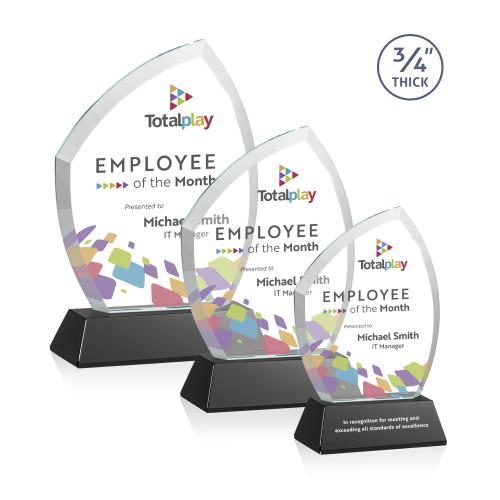 Of the Crystal Awards, this beautiful Daltry VividPrint™ Award on Newhaven Base - Black is a great choice. (AWV21451-K) With its beautiful curved beveled frame, the 3/4" thick Starfire Crystal Daltry is a graceful award for recognizing a special achievement. Mounted on a tall tapered base in your choice of 8 distinct colors and includes full-color VividPrint for a vibrant display of excellence. Second position imprint optional.