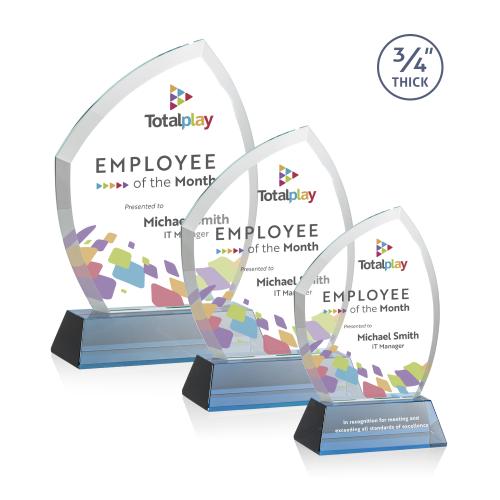 Of the Crystal Awards, this beautiful Daltry VividPrint™ Award on Newhaven Base - Sky Blue is a great choice. (AWV21451-S) With its beautiful curved beveled frame, the 3/4" thick Starfire Crystal Daltry is a graceful award for recognizing a special achievement. Mounted on a tall tapered base in your choice of 8 distinct colors and includes full-color VividPrint for a vibrant display of excellence. Second position imprint optional.