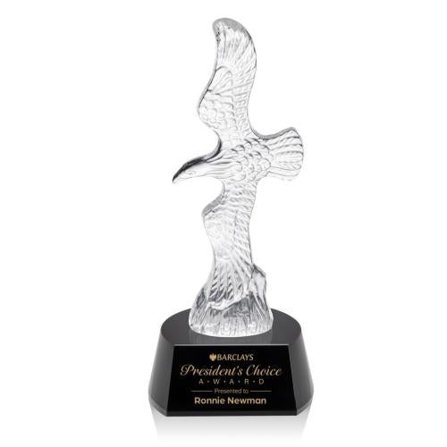 Of the Crystal Awards, this beautiful Staffordshire Eagle Award - Black is a great choice. (OPT6889-K) The Staffordshire Eagle on Base is a powerful award crafted in Optical Crystal, showcasing a finely detailed eagle in full flight with outstretched wings. Its striking design symbolizes strength, vision, and achievement, making it a commanding centerpiece for recognition. Available with a choice of elegant bases in blue, black, or clear crystal, it can be customized to suit any award presentation.