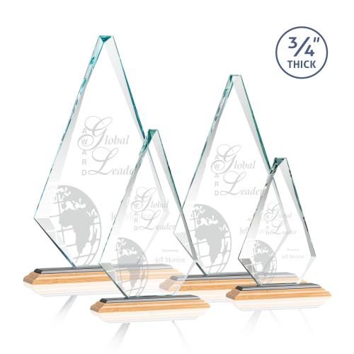 Of the Crystal Awards, this beautiful Windsor Award - Bamboo/Black is a great choice. (AWS1401-O) The exquisite Windsor Award features a 0.75" thick Starfire Crystal diamond with sparkling bevels and is mounted on a triple-stepped bamboo base. A classic design that's perfect for corporate recognition. Various other bases are available!