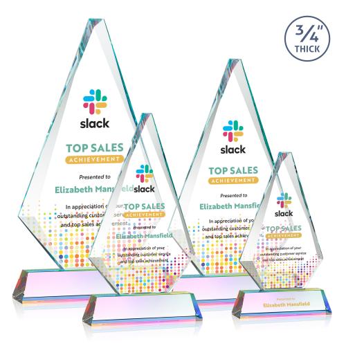Of the Crystal Awards, this beautiful Windsor VividPrint™ Award on Newhaven - Prismatic is a great choice. (AWV14051-M) The exquisite Windsor Award features a 0.75" thick Starfire Crystal diamond with sparkling bevels and mounted on a tall tapered Optical Prismatic Base. A classic design that's perfect for corporate recognition. Let your message POP with full-color VividPrint. Second position Imprint Optional.