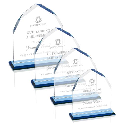 Of the Crystal Awards, this beautiful Montibello Award - Sky Blue is a great choice. (AWS4111-S) The Montibello Award features an exquisite Starfire upright with interchanging front and back facing bevels, mounted on a beveled sky blue Starfire base to create a striking award.