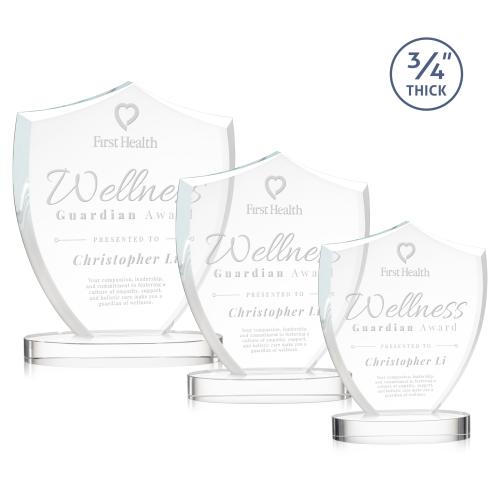 Of the Crystal Awards, this beautiful Scudo Shield on Alberton Base - Clear is a great choice. (AWS18172) A shield signifies protection, authority, and stability, making the Scudo Shield Award suitable for recognizing outstanding excellence for first responders and law enforcement. This Starfire Crystal Award features beveled edges and is mounted on an oval optical crystal base.