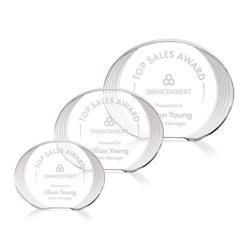 Of the Crystal Awards, this beautiful Sheraton Award is a great choice. (OPT4701) The Sheraton Oval Award showcases a sleek, freestanding oval design with a subtly concaved shape and a striped, ridged edge that draws attention to the imprint area. Its layered detailing creates depth and visual interest, elegantly framing your personalized message or logo. Refined and contemporary, this award is a striking way to recognize achievement with modern style.
