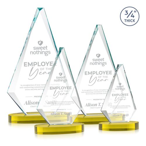 Of the Crystal Awards, this beautiful Windsor Award on Alberton Base - Gold is a great choice. (AWS14061-D) The exquisite Windsor Award features a **0.75"** thick Starfire Crystal diamond with sparkling bevels and mounted on a Starfire Alberton base. A classic design that's perfect for corporate recognition.