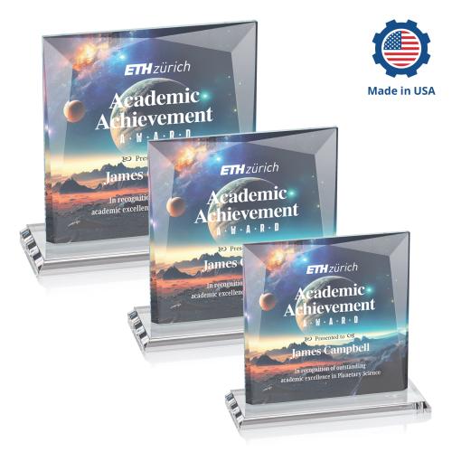 Of the Crystal Awards, this beautiful Tanner VividPrint™ Award is a great choice. (AUV5141) Brilliant VividPrint award in 3 sizes features a 0.75" thick Starfire Crystal and deep divergent bevels to create a striking work of recognition. Mounted on a thick mitered base. Elevate your artwork with full-color VividPrint!