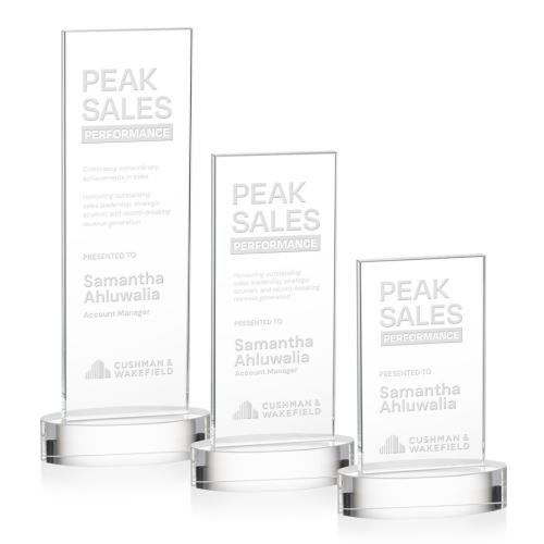 Of the Crystal Awards, this beautiful Heathrow Award on Alberton Base - Clear is a great choice. (AWS58661) The elegant Starfire Crystal Heathrow Award features a vertical upright mounted on the optical crystal oval Alberton base. The large decorating area is optimal for achievement recognition.