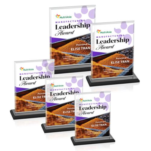 Of the Crystal Awards, this beautiful Vitalia VividPrint™ Award - Black is a great choice. (AWV3342-K) The Vitalia VividPrint Award is framed by beveled edges and mounted on a beveled Starfire base for a simple yet striking statement of achievement recognition. Make your artwork POP! with full-color VividPrint.