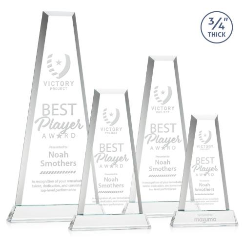 Of the Crystal Awards, this beautiful Imperial Tower on Newhaven Base - Clear is a great choice. (AWS15052) The elegant Imperial Award reflects a 0.75" thick Starfire Crystal tower and showcases stoic bevels throughout the piece. With an opulent Starfire Crystal Newhaven base, this striking award is an outstanding recognition gesture.