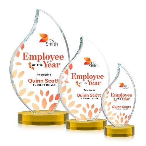 Of the Crystal Awards, this beautiful Odessy Flame VividPrint™ Award on Alberton Base - Gold is a great choice. (AWV12061-D) This classic award features a 3/4" thick Starfire Crystal VividPrint Flame with rounded edges and mounted on your choice of clear or colored Alberton Base. An elegant award to recognize a great achievement or momentous event. Let your logo and message POP! with full color VividPrint!