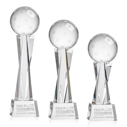 Of the Crystal Awards, this beautiful Pickleball Award on Grafton Base - Clear is a great choice. (OPT8554-GC1) Our Pickleball Award is a tribute to the athleticism and dedication of pickleball enthusiasts. At the heart of this masterpiece is a flawlessly rendered Optical Crystal Pickleball that captures and refracts light in a captivating display. Mounted on a complimenting Optical base for personalization with a Logo or Name. An outstanding award, gift, or keepsake for pickleball tournaments, competitions, or special occasions.