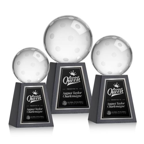 Of the Crystal Awards, this beautiful Pickleball Award on Tall Marble Base is a great choice. (OPT8552-MT) Our Pickleball Award is a tribute to the athleticism and dedication of pickleball enthusiasts. At the heart of this masterpiece is a flawlessly rendered Optical Crystal Pickleball that captures and refracts light in a captivating display. Mounted on a complimenting Optical base for personalization with a Logo or Name. An outstanding award, gift, or keepsake for pickleball tournaments, competitions, or special occasions.