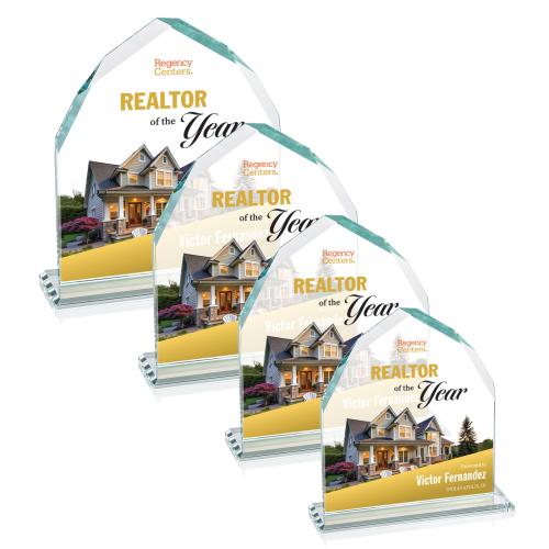 Of the Crystal Awards, this beautiful Montibello VividPrint™ Award - Clear is a great choice. (AWV4111) The Montibello VividPrint Award features an exquisite Starfire upright with interchanging front and back facing bevels, mounted on a beveled Starfire base to create a striking award. Bring your artwork to life with full-color VividPrint!