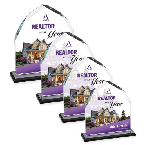Of the Crystal Awards, this beautiful Montibello VividPrint™ Award - Black is a great choice. (AWV4111-K) The Montibello VividPrint Award features an exquisite Starfire upright with interchanging front and back facing bevels, mounted on a beveled Starfire base to create a striking award. Bring your artwork to life with full-color VividPrint!