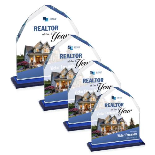 Of the Crystal Awards, this beautiful Montibello VividPrint™ Award - Blue is a great choice. (AWV4111-L) The Montibello VividPrint Award features an exquisite Starfire upright with interchanging front and back facing bevels, mounted on a beveled Starfire base to create a striking award. Bring your artwork to life with full-color VividPrint!
