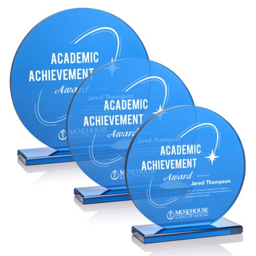 Of the Crystal Awards, this beautiful Dunlow Award is a great choice. (AWL3201) The Dunlow Award is a striking symbol of achievement, featuring a bold circular design. Set atop a solid blue base, the award features matching blue accents in the circle, creating a cohesive and elegant look. Perfect for honoring excellence, this award makes a lasting impression with its modern style and brilliant color.