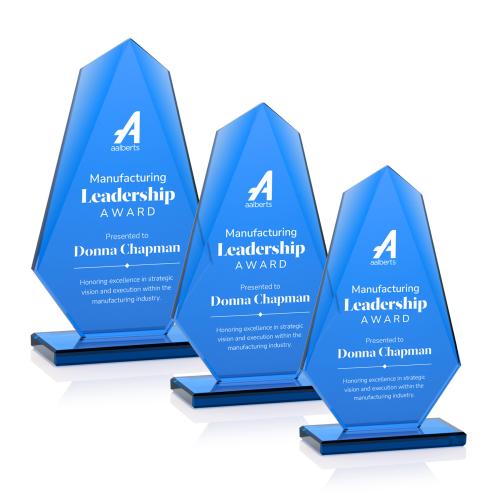 Of the Crystal Awards, this beautiful Winstead Award is a great choice. (AWL3231) The Winstead Award embodies true elegance with its beveled edge design that begins at the top and gracefully tapers toward the base. Crafted entirely in rich blue color, including its solid rectangular base, it exudes a bold and sophisticated presence. A stunning choice for recognizing excellence, this award captures both strength and refinement in its striking design.