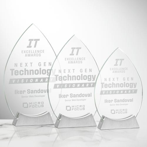 Of the Crystal Awards, this beautiful Newham Award is a great choice. (AWS5961) The Newham Award is a striking recognition piece crafted from premium starfire crystal in an elegant teardrop shape. Its sleek design is complemented by a sturdy brushed aluminum base, creating a modern and sophisticated presentation. Perfect for honoring excellence and innovation, this award combines contemporary style with timeless prestige.