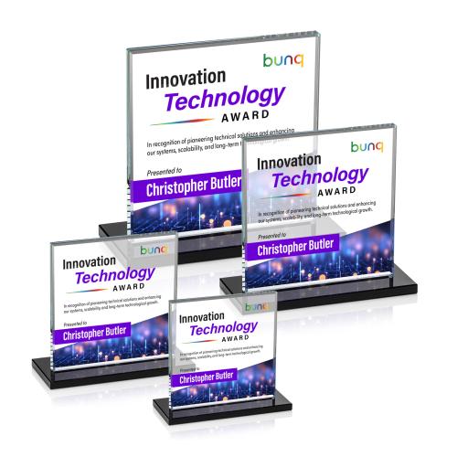 Of the Crystal Awards, this beautiful Sahara VividPrint™ Award - Black is a great choice. (AWV3301-K) Bold Sahara VividPrint Award features a 0.5" thick Starfire crystal mounted on a vibrant flat-edged base for a spectacular work of achievement recognition. Bring your artwork to life with full-color VividPrint!