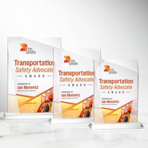 Of the Crystal Awards, this beautiful Shamrock VividPrint™ Award is a great choice. (AWV6401) The .75" thick Shamrock VividPrint Award is a tall Starfire Crystal rectangular award that features geometric bevels throughout the perimeter of the imprinting area, creating a curtain effect that perfectly outlines your recognition message. Bring your artwork to life with full-color VividPrint!