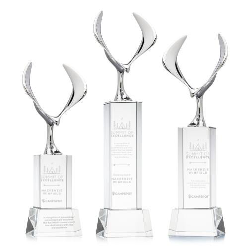 Of the Crystal Awards, this beautiful Maverick Eagle Award on Belcroft Base - Clear is a great choice. (OPT6872-BC1) The Maverick Eagle Award showcases a soaring chrome eagle, a bold symbol of vision, freedom, and achievement. Its dynamic wingspan is elevated by a choice of elegant Optic Crystal bases, available in various shapes and finishes to suit any recognition style. This striking award makes a powerful statement, celebrating excellence with both strength and sophistication. Second-position etch is optional.