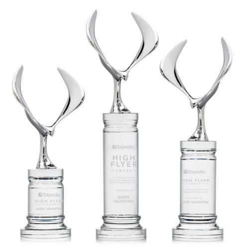 Of the Crystal Awards, this beautiful Maverick Eagle Award on Colverstone Base - Clear is a great choice. (OPT6872-CS1) The Maverick Eagle Award showcases a soaring chrome eagle, a bold symbol of vision, freedom, and achievement. Its dynamic wingspan is elevated by a choice of elegant Optic Crystal bases, available in various shapes and finishes to suit any recognition style. This striking award makes a powerful statement, celebrating excellence with both strength and sophistication.