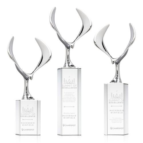 Of the Crystal Awards, this beautiful Maverick Eagle Award on Dakota Base - Clear is a great choice. (OPT6872-DK1) The Maverick Eagle Award showcases a soaring chrome eagle, a bold symbol of vision, freedom, and achievement. Its dynamic wingspan is elevated by a choice of elegant Optic Crystal bases, available in various shapes and finishes to suit any recognition style. This striking award makes a powerful statement, celebrating excellence with both strength and sophistication.
