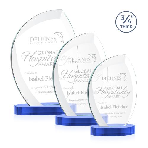 Of the Crystal Awards, this beautiful Wichita Award on Alberton Base - Sky Blue is a great choice. (AWS24161-S) The Wichita Award on Alberton Base features thick 3/4" Starfire Crystal with deep sweeping bevels that elegantly arch around your words of recognition with shimmering light. A modern monument for any special achievement.