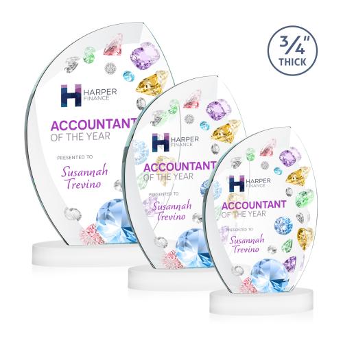 Of the Crystal Awards, this beautiful Wichita VividPrint™ Award on Alberton Base - White is a great choice. (AWV24161-W) The Wichita Award on Alberton Base features thick 3/4" Starfire Crystal with deep sweeping bevels that elegantly arch around your words of recognition with shimmering light. A modern monument for any special achievement. Includes full-color VividPrint so the only limitation is your imagination.